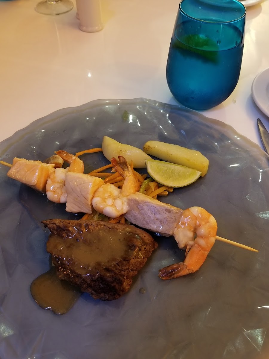 The Under The Sea restaurant in the Punta Cana resort was by far the best of all the restaurants that I visited in terms of the ambience and was very well designed which actually gave a feeling of being under the sea. We ordered Chef’s Salad & Crab Croquette from the Appetizers, Sea Skewer & Chicken in Mushrooms Sauce from the Main Course and Fried fish fingers & Pasta with Tomato and Basil from the Kids menu. All the dishes were okay but the portions were small. I personally liked the Sea Skewer better than the others. The fish was grilled well and it tasted good with the curry rice. I didn’t see any corns and coconut in the dish though. For desserts, we ordered Lemon Tart and Crème Brûlée. The Lemon Tart wasn’t that good and the Crème Brûlée didn’t look like an actual Crème Brûlée. It was too sweet and had to be left out. The server for our table was a very nice gentleman and was always checking about the food or anything we needed. His service was exceptional. Overall it was a great experience dining at this beautiful restaurant!